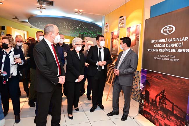 Türkiye’nin ilk ve en büyük yassı çelik üreticisi Erdemir, çalışanlarının eşlerinin bir araya gelerek kurduğu Erdemirli Kadınlar Yardım Derneği üyesi kadınların eserlerini sergiye dönüştürdü. İki yağlı boya ve 15 sulu boya olmak üzere toplamda 17 resimden oluşan sergi, ilçe protokolü, Erdemir yöneticileri ve Erdemirli Kadınlar Yardım Derneği üyelerinin katıldığı açılış töreniyle kapılarını açtı.