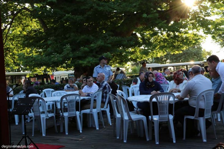 Başkan Uysal'ın masaları tek tek gezerek halk ile selamlaştığı, İlçe Müftülüğü İlahi Grubu'nun Tasavvuf Musiki Dinletisi ile başlayan programda, Kur'an-ı Kerim Tilaveti ve Mevlid-i Şerif okunurken Kadir Gecesi Programı iftar yemeği ile sona erdi.