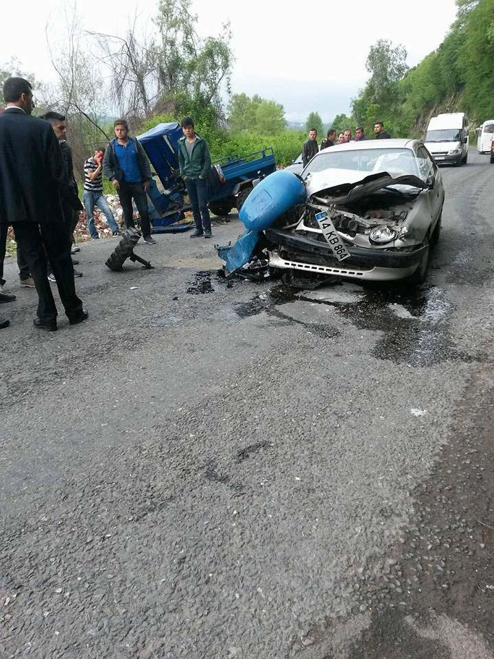Kaza, Mollabey köyü ile Aşağı Dağ köy yolu üzerinde Ulukum mevkisinde meydana geldi. Edinilen bilgilere göre, Erol H. (42) yönetimindeki 14 KB 864 plakalı otomobil ile karşı yönden gelen tarım aracı olarak bilinen Soner K. (27) yönetimindeki patpat kafa kafaya çarpıştı. Kaza sonucu patpat sürücüsü Soner K. yaralandı