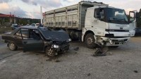 Zonguldak'ın Çaycuma ilçesinde kamyon ile otomobilin kafa kafaya çarpışması sonucu 4 kişi yaralandı.