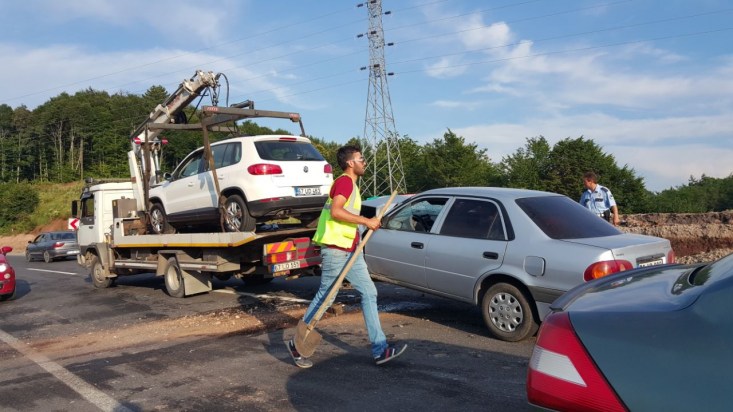 Trafik Ekiplerinin gerekli işlemleri tamamlaması, araçlar, çekicilerle kaldırılmasının ardından yolda ulaşım normale döndü.