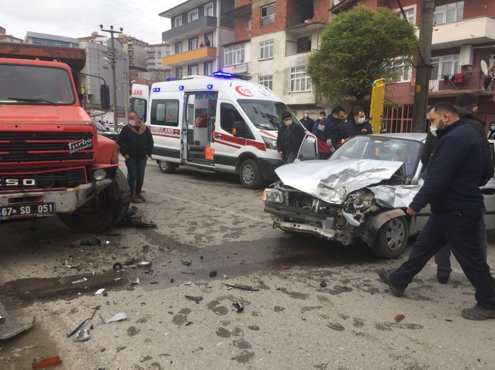 Kaza saat 16.00 sıralarında ilçeye bağlı Çay Boyu Sokak üzerinde meydana geldi. İddiaya göre Mustafa K. idaresindeki 67 SD 051 plakalı kamyon ile İsa E. İdaresinde ki 67 SK 214 plakalı hususi otomobil kafa kafaya çarpıştı. Çarpışma sonucu meydana gelen trafik kazasında 67 SK 214 plakalı otomobil sürücüsü İsa E. Ve otomobilde bulunan A.K., E.E. yaralandı. Çevredeki vatandaşlar ve diğer sürücüler tarafından 112 sağlık ekiplerine haber verildi. Bölgeye kısa sürede ulaşan 112 sağlık ekipleri A.K. ve E.E.'ye yaptıkları ilk müdahalenin ardından çeşitli hastanelere kaldırılarak tedavi altına alındı. Yaralıların tedavilerinin devam ettiği öğrenildi. Kazayı yara almadan atlatan Kamyon sürücüsü ifadesi alınmak üzere polis merkezine götürüldü. Kaza ile ilgili soruşturma başlatıldı.