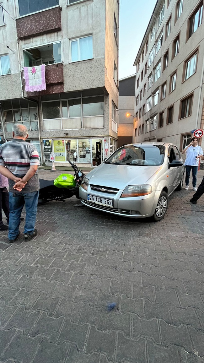 İddiaya göre, S.N.Y. idaresindeki 25 ACG 262 plakalı otomobil ile E.Ö. idaresindeki 67 AEH 424 plakalı motosiklet kafa kafaya çarpıştı. Çarpmanın etkisi ile yaralanan motosiklet sürücüsü E.Ö. için sağlık ekiplerine haber verildi. Kısa sürede olay yerine gelen sağlık ekipleri yaralı motosiklet sürücüsü E.Ö.’ ye yaptıkları ilk müdahalenin ardından Özel Echomar Hastanesine kaldırdı. Hastanede tedavi altına alınan motosiklet sürücüsü E.Ö.’ nün hayati tehlikesi olmadığı, otomobil sürücüsü S.N.Y. ise ifadesi alınmak üzere Merkez Karakoluna götürüldüğü öğrenildi.