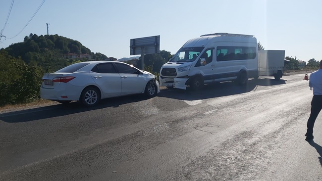 Kaza 16:15 sularında Ören Mahallesi Deli Hakki yolunda meydana geldi. İddiaya göre fındık işçisi taşıyan minibüs ile otomobil kafa kafaya çarpıştı. Kazada biri çocuk üç kişi yaralandı. Yaralılar için haber verilen sağlık ekipleri kısa sürede olay yerine gelerek yaralılara ilk müdahaleyi yaptı. Yaralılar daha sonra Devlet Hastanesine kaldırıldı. Yaralıların tedavisine başlandığı ve olayla ilgili soruşturma başlatıldığı öğrenildi.