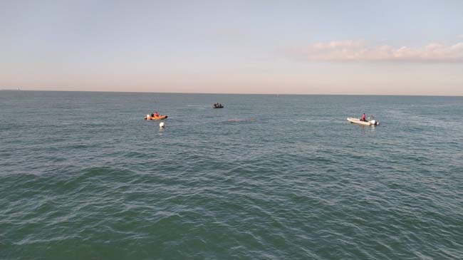 Sabah saatlerinde ilçeye gelerek çalışmalara katıldığını anlatan Akpınar, "Sabah saatlerinde olay yerine geldim. Geminin battığı söylenen bölgeye ulaştığımda bir buçuk saat içinde geminin enkazına ulaşıldı. Geminin enkazı karaya 80 metre uzaklıkta. Su yüzeyine de 8.5 metre derinliğinde enkaza ulaşıldı. Gemideki şu andaki tespitlerimizde yaşam odası denilen bölgeyi nokta atışı olarak tespit ettik. Çalışmalar orada devam ediyor" ifadelerine yer verdi.