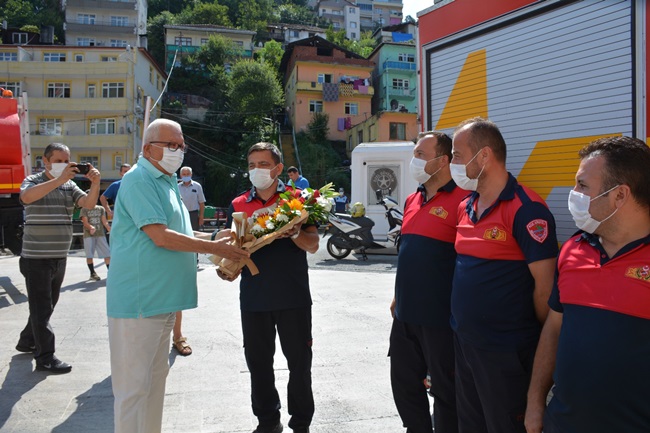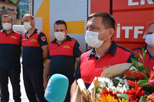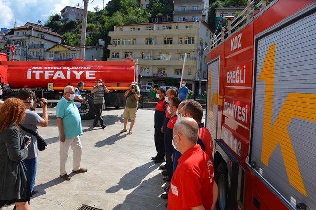 Kdz. Ereğli Belediyesi İtfaiye Müdürlüğü’ne bağlı 2 araç ve 8 personelden oluşan yardım ekibi, Antalya Manavgat’taki orman yangınını kontrol altına almak için verdiği mücadeleyi tamamlayarak Kdz. Ereğli’ye döndü. İtfaiyeciler, Belediye binası önünde, Kdz. Ereğli Belediye Başkanı Halil Posbıyık, belediye yöneticileri ve çalışanları tarafından alkışlarla karşılandı. Posbıyık itfaiyecileri çiçek vererek kutladı ve “Sizlerle gurur duyuyorum. Vatan için gittiniz, çalıştınız geldiniz. Ne mutlu size, ne mutlu bize” dedi.