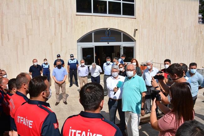 “Sağ salim aramıza döndünüz. Son derece mutlu olduk. Orada yaptığınız vefakar çalışmalardan dolayı hepinize ayrı ayrı teşekkür ediyorum. Muhammet Ali Ateş oradaki bilgilerin hepsini bana aktardı. Oradaki köylülerin size gösterdiği sevgi selini, evlerinin yanmaması için ortaya koyduğunuz cesareti anlattılar. Oradan bir çok kişiden telefonlar aldık. ‘Ereğli İtfaiyesini burada gördük’ diye. Hem Manavgatlılardan hem de Ereğli’den gidip oraya yerleşenlerden telefonlar aldık. ‘Gurur duyduk, onurlandık’ dediler. Biz de gurur duyduk. Belediye olarak bütün arkadaşlarımızla ve Ereğli halkı olarak sizlerle gurur duyduk. Hepinizden Allah razı olsun.
