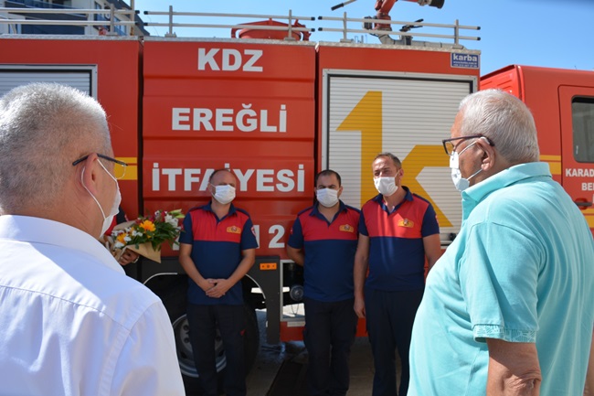Türkiye’yi saran orman yangınlarına karşı alevlerle mücadele ederek insanları, hayvanları, ağaçları korumak için özveriyle çalışan itfaiye ekibi, Kdz. Ereğli’ye döndü. Kdz. Ereğli Belediye Başkanı Halil Posbıyık’ın talimatıyla yangın bölgesine giden İtfaiye ekibi, Manavgat orman yangınını Türkiye’nin değişik illerinden gelen ekiplerle birlikte kontrol altına almak için yaptığı çalışmaları tamamladı. Belediye Başkanı Posbıyık, belediye yöneticileri ve çalışanları, kahraman 8 itfaiyeciyi alkışlarla ve çiçekle karşıladılar. Posbıyık “Vatan için çalıştınız, sizlerle gurur duyuyorum” dedi.