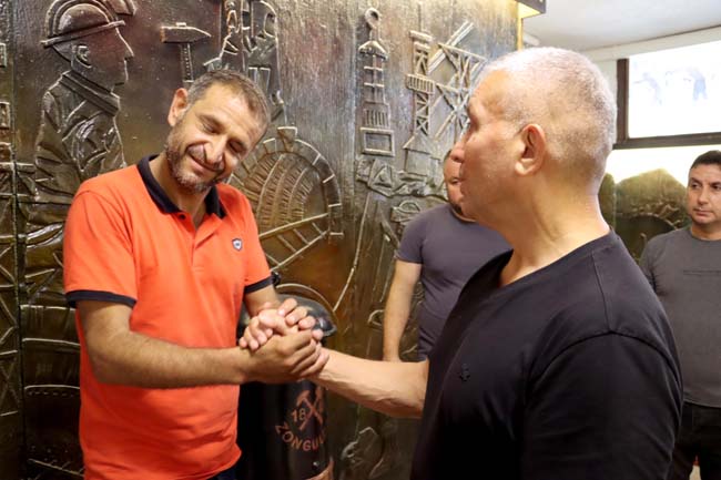 Kahramanmaraş’ta 6 Şubat 2023 tarihinde gerçekleşen depremden kurtulan Mehmet Mengü, kardeşinin cenazesini çıkartan maden işçilerini unutmadı. GMİS Genel Teşkilatlandırma ve Eğitim Sekreteri Tayfun Demir’in makam odasında maden işçileri ile buluşan Mengü duygu dolu anlar yaşadı. Ziyarette Üzülmez Şube Başkanı Sefer Karakabak ve şube yöneticileri de hazır bulundu. Kahramanmaraş’ta gören yapan maden işçilerinin kurtarma çalışmalarına yakından şahit olduğunu ve teşekkür etmek için ziyaret etmek istediğini ifade eden Mengü, “Ben tüm madencilere teşekkür ediyorum. Annem ve ben sizlere çok teşekkür ediyorum. Ben kardeşimi kaybettim Ebral Sitesinde. Girilmeyecek yerlere girdi madenciler. Ben saatlerce çalıştıklarına şahidim. Çok zor günlerdi. Diyecek kelimeler bulamıyorum sizlere. Sizleri görmek için Kahramanmaraş’ın Göksun ilçesinden geldim. Allah sizlerden razı olsun.” dedi.
