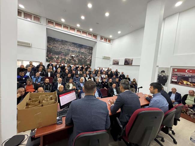 Çaycuma'da kahverengi kokarca böceğiyle mücadele için düzenlenen bilgilendirme toplantısı, Çaycuma Kaymakamı Adem Kaya'nın başkanlığında gerçekleştirildi. İlçe Tarım Müdürlüğü teknik ekibi, Halk Sağlığı personeli, muhtarlar, belediyelerin temsilcileri ve Ziraat Odası Başkanlığının katılımıyla gerçekleşen toplantıda, böceğin yayılmasını önlemek amacıyla alınacak tedbirler masaya yatırıldı.