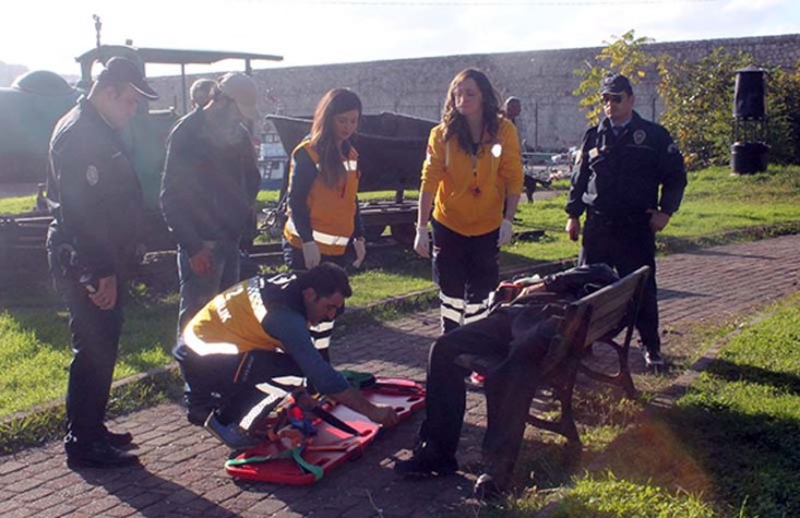 için çevredeki vatandaşlar olay yerine 112 sağlık ekiplerini çağırdı. Bel ve