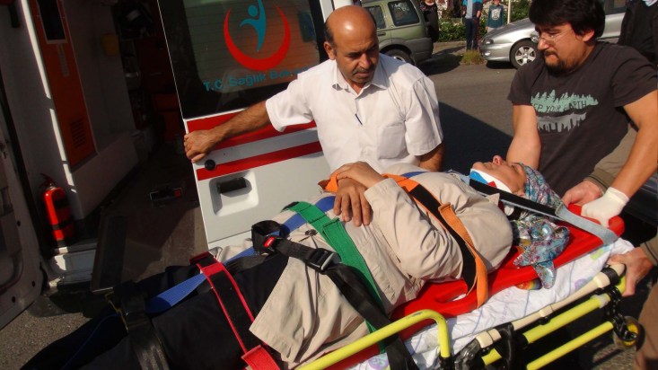 sedyeye koyup ambulansa aldı. Taş tedavisi için Karadeniz Ereğli Devlet Hastanesi'ne
