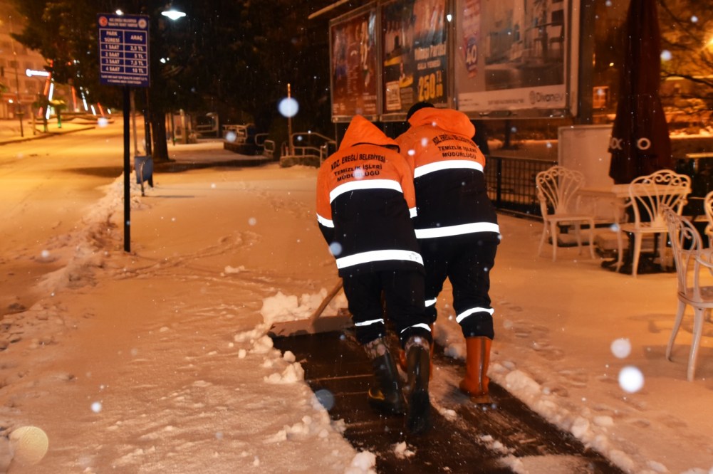 Kdz. Ereğli Belediyesi’nin karla mücadele çalışmaları her yönüyle sürüyor. Kentin işlek caddelerindeki yaya yollarında vatandaşların sıkıntı yaşamaması için kaldırımlar kardan temizleniyor.