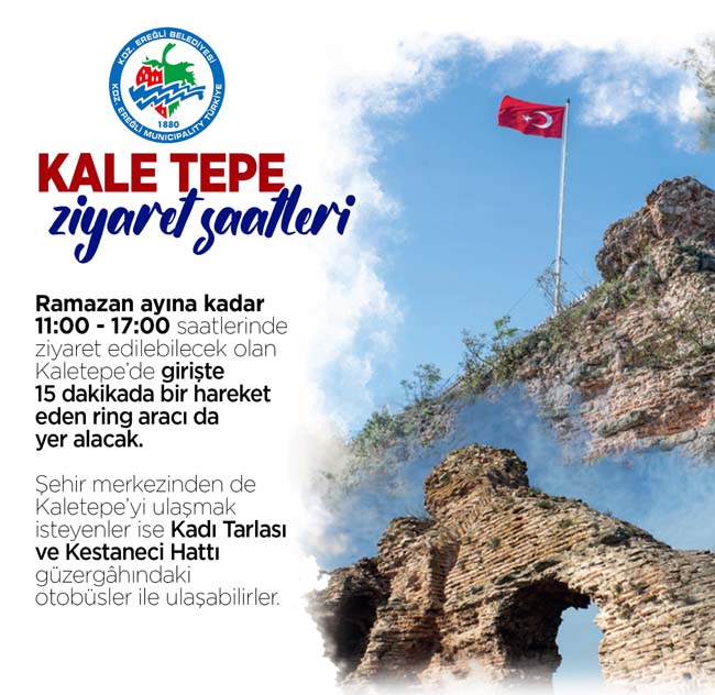 Kdz. Ereğli turizmine önemli katkılar sağlayacak olan Kaletepe halkın hizmetine açıldı. Ramazan ayına kadar her gün belirli saatler arasında ziyaret edilebilecek olan tarihi alana çıkış için Kaletepe girişinde ayrıca ring aracı da yer alacak.