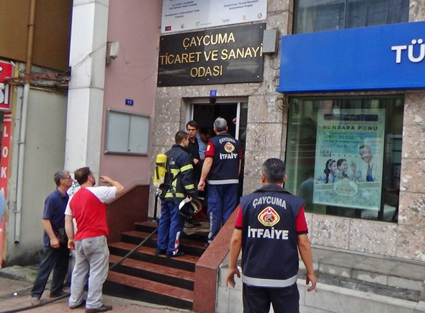 Yangın, saat 10:10 sıralarında başladı. Atatürk Bulvarı üzerinde Ticaret ve Sanayi Odası'nın bulunduğu binanın bodrum katında çalışan işçilerin kömürle yanan kalorifer borularının ilçede doğalgaz hattı olması dolayısıyla mevcut borularının makine ile kesilmesi sırasında boruların içinde olan fueloil yakıtı bir anda parladı. Yangının çıkmasıyla bodrum katında çalışan işçiler kendilerini dışarı attı. Olayın polise intikal etmesi sonrasında Çaycuma Belediyesi itfaiye ekipleri yangın yerine geldi. İtfaiye ekipleri binanın bodrum katına girmesiyle oluşan yangın kısa zaman sonra söndürüldü. Binanın birinci katında olan bir banka şubesinin içini de duman kapladı. Banka çalışanları olay yerine gelmesi üzerine bankanın kapısı açılmasıyla içerisi havalandırıldı. İtfaiye ekiplerinin soğutma çalışmasından sonra elektrik arıza ekipleri enerjiyi kesti.