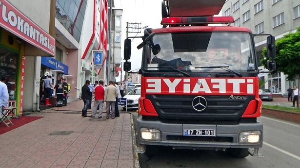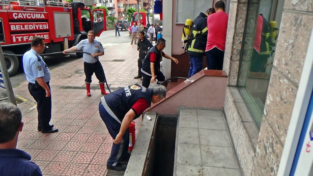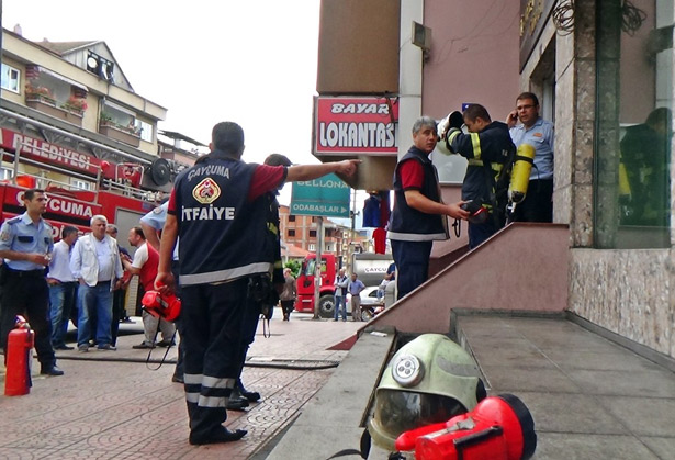 Zonguldak'ın Çaycuma ilçesinde, bir iş yerinin bodrum katında kalorifer borularının kesilmesi sırasında parlayan ateş yangın çıkardı.