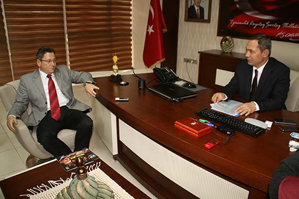 Ereğli Belediye Başkanı Hüseyin Uysal ve Ereğli TSO Başkan Yardımcısı Sertan Yalçın, Belediye Başkanlık Makamında düzenlenen toplantıda, protokolün tanıtımı için bir araya geldi.