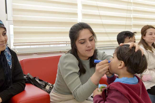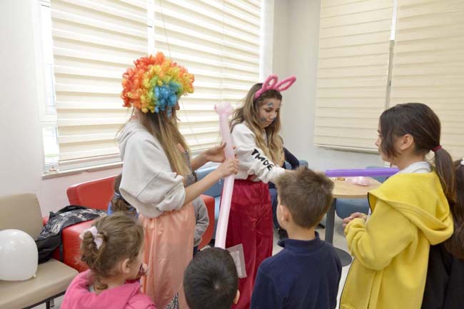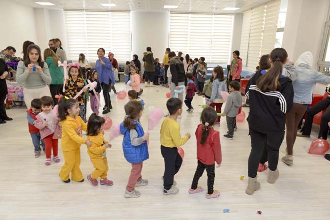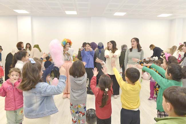 Üniversite personeli ile çeşitli oyunlar oynayan ve müzik eşliğinde eğlenen çocuklar sayesinde kampüs renkli görüntülere sahne oldu.