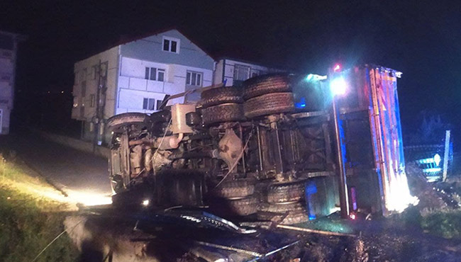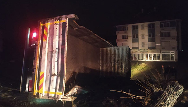 Zonguldak’ta kamyon elektrik direğine çarparak yan yattı. Kazada kamyon şoförü hafif yaralanırken, mahalle karanlığa gömüldü.