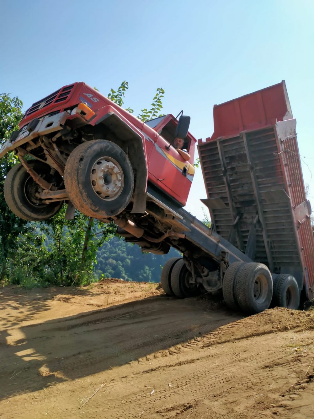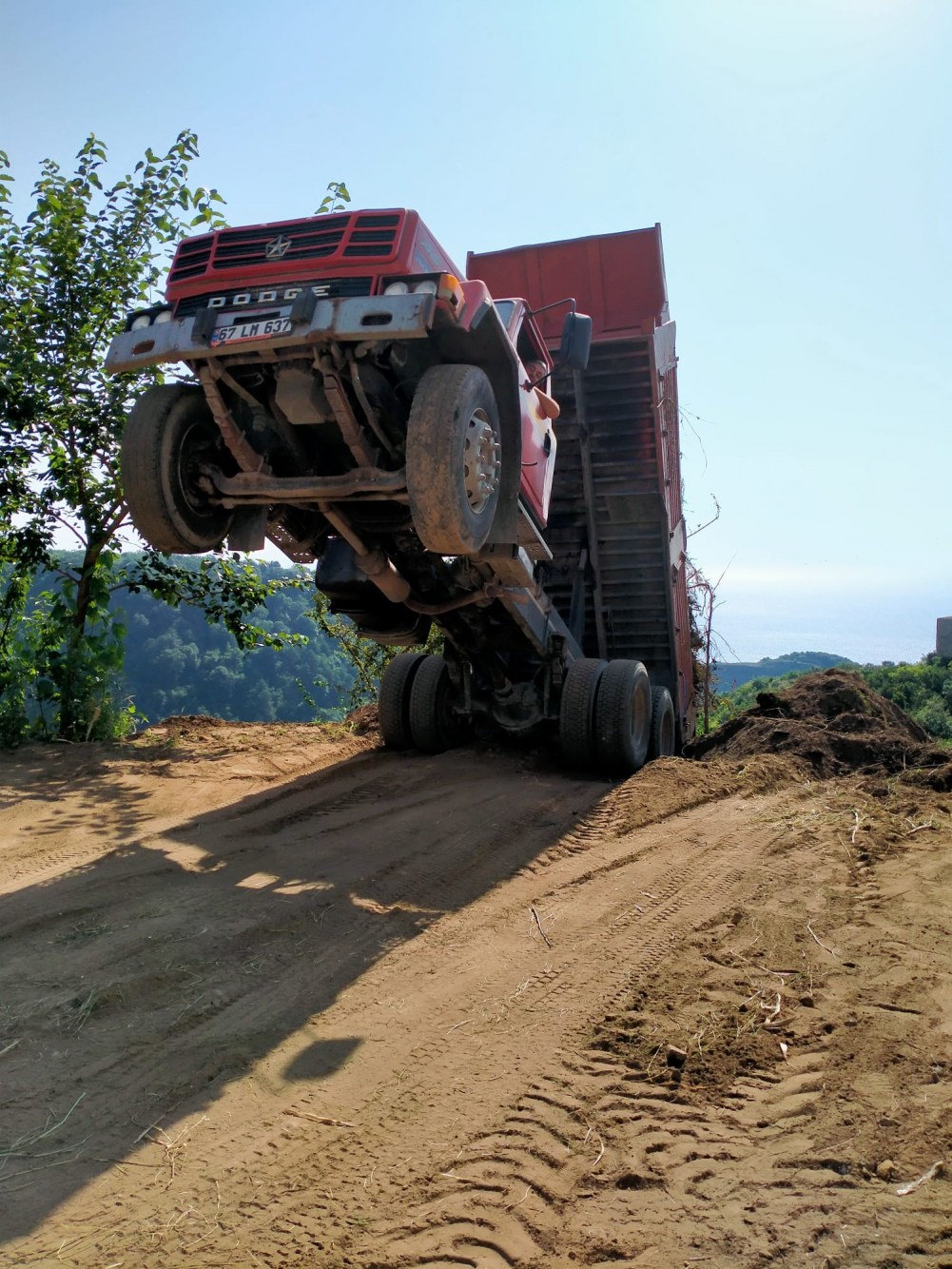 Zonguldak’ın Ereğli ilçesinde hafriyat boşaltan kamyon Şah’a kalktı.