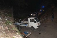 Zonguldak'ta bir kamyonet, geri manevra yapıldığı sırada toprak kayması sebebiyle 5 metre yükseklikten yere çakıldı.