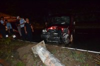 Zonguldak'ta, kontrolden çıkan bir kamyonet aydınlatma direğine çarpınca iki kişi yaralandı.
