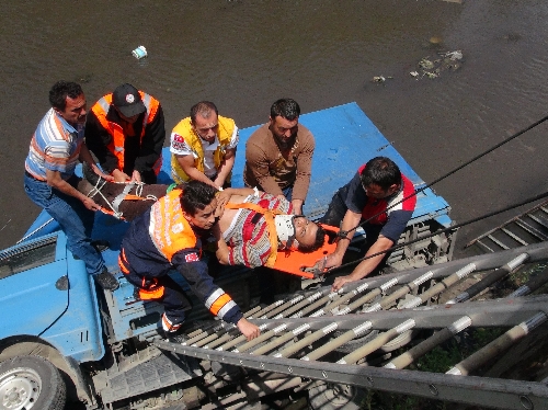 Kent merkezindeki İkinci Makas Kavşağı´ndan Sebze Hali istikametine giden Feyzruz Amil (56) idaresindeki 67 DZ 533 plakalı kamyonet, sürücüsünün direksiyon hakimiyetini kaybetmesi sonucu kaldırımın üzerine çıkarak yaklaşık 5 metreden Üzülmez Deresi´ne uçtu. Sürücü Feyruz Amil hafif, yanında bulunan Celal Çiftçi (36) ise ağır yaralandı.