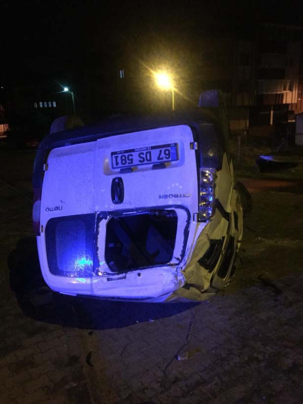 yoldan çıkarak devrildi. Kontrolden çıkan aracın devrilmesi sonucu sürücü ile