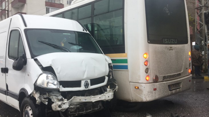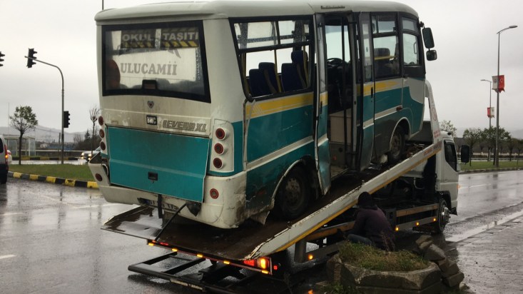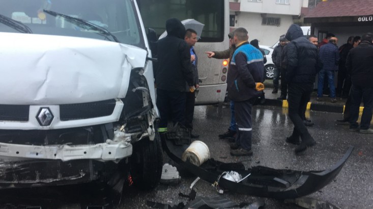 minibüse ardından da halk otobüsüne çarparak durabildi. Kazada sürücülerden