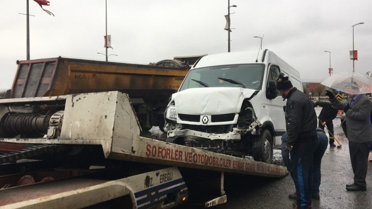 kamyonetin kavşaktan dönüş yapan minibüse çarptığı, çarpmanın etkisi ile