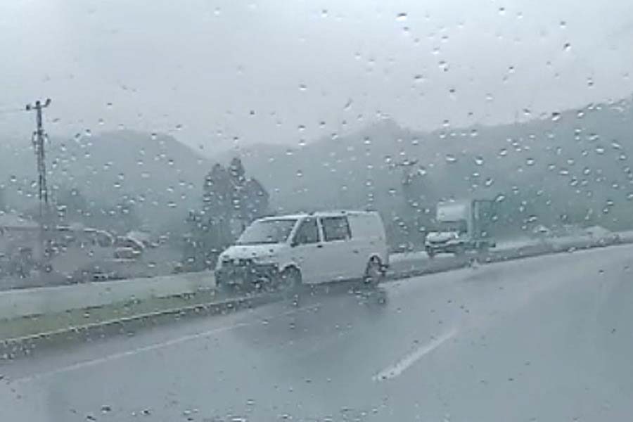 Karadeniz Ereğli ilçesinde yağan yağmur sonrası direksiyon hâkimiyetini kaybeden sürücünün kullandığı kamyonet su kanalına düştü.