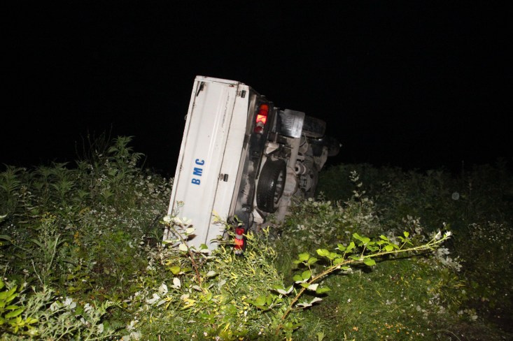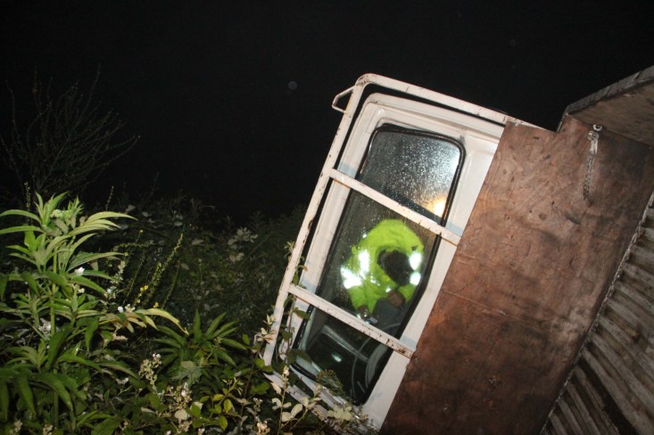 yolda direksiyon hakimiyetini kaybetmesi sonucu devrildi. Yaklaşık 30 metre