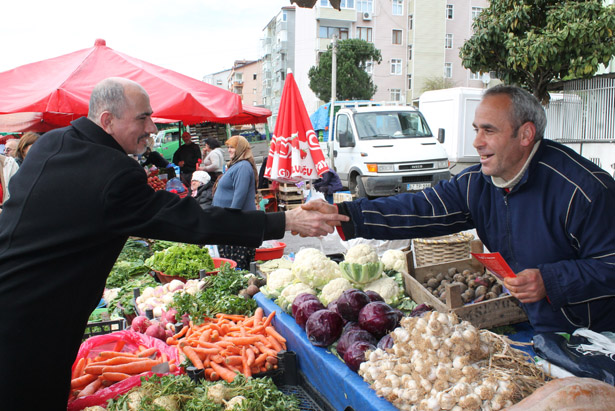 Özdemir, pazardan alış veriş yapan ev hanımlarının da dertlerini, sorunlarını dinleyerek,