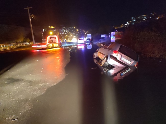 İddiaya göre; İ.A. idaresindeki 67 AAF 023 plakalı otomobil sürücüsü yoğun yağan yağışların etkisinden dolayı biriken su savurması sonucu yol kenarında bulunan kanala düştü. Çevredeki vatandaşların durumu sağlık, itfaiye ve polis ekiplerine bildirdi. Kısa sürede olay yerine gelen itfaiye ekiplerin çalışması sonucu otomobil kaldırılırken, meydana gelen kazada şans eseri yaralanan olmadı.