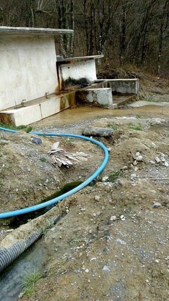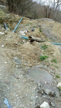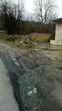 içme suyu olarak kullanıldığı çeşmenin yanındaki borulardan yola doğru lağım