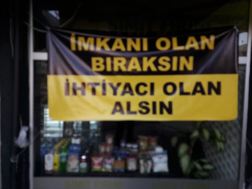 Böylesine önemli dönemlerde büyük önem kazanan bu tür dayanışma girişimlerimize, durumu iyi olan her vatandaşımızın katkı vermesini bekliyoruz. Bunun için de iş yerinin girişine ‘İhtiyacı olanlar alsın, imkanı olanlar bıraksın’ yazılı bir de pankart astık. İsteyen vatandaşlarımız, temin ettikleri kullanım tarihi geçmemiş ürünleri Yeni Mahalle’deki Ekmek Teknesi isimli fırına bırakabilirler.”