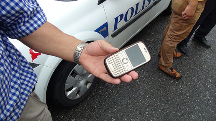 Diğer yandan genç kızın elindeki cep telefonunu alarak
