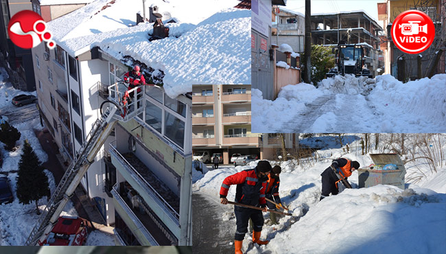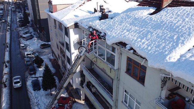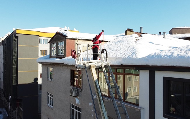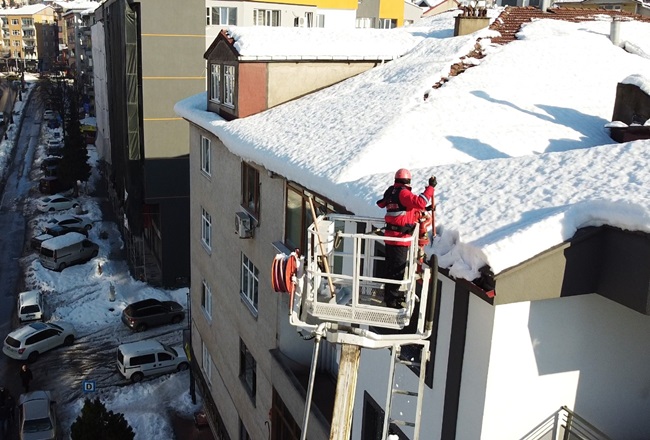 İtfaiye Müdürlüğü ekipleri, çatılardan düşmesi muhtemel kar kütleleri ve buz sarkıtlarının yaratacağı tehlikeye karşı özellikle halkın yoğun olduğu yerlerde çatı temizliği yapıyor, önlem alıyor.