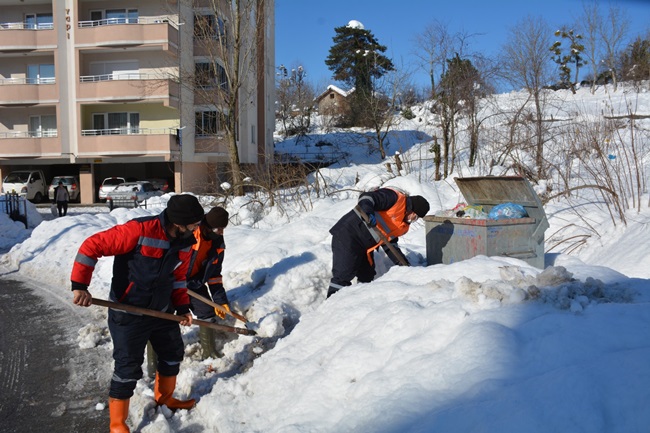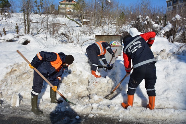 Temizlik İşleri Müdürlüğü, çöp konteynırlarındaki katı atıkların tahliyesine devam ediyor. Park ve Bahçeler Birimi, yoğun kar yağışı sonrası devrilen ağaç ve kırılan dalların temizliğini sürdürüyor.