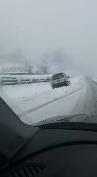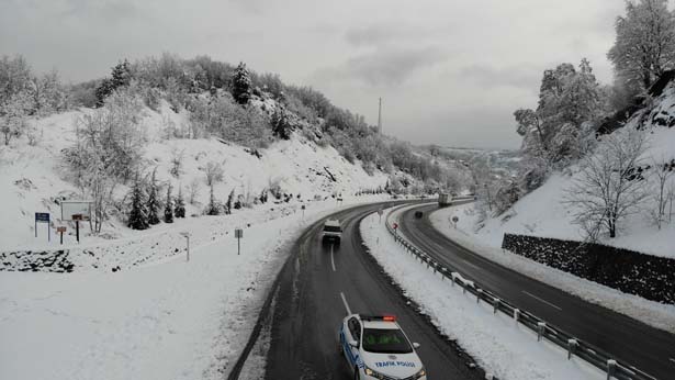 Zonguldak'ta dün gece saatlerinden itibaren etkili olan kar yağışı Ereğli karayolunda kartpostallık manzaralar oluşturdu. Sabahın erken saatlerinde yola çıkan vatandaşlar, yolun buzlanması sebebiyle yoldan çıktı. Ekipler tuzlama ve yol açma çalışmalarını sürdürdü.