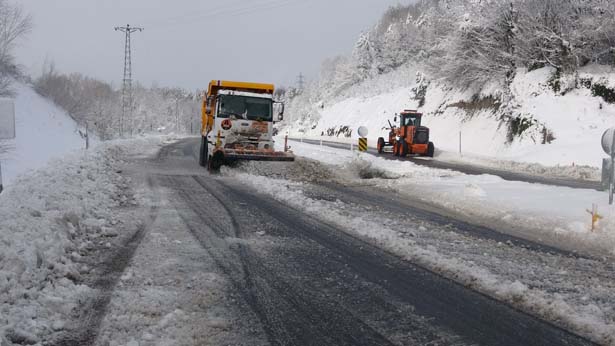 Karayolları Müdürlüğü'ne bağlı ekipler de buzlu yolları açma, tuzlama ve kar küreme çalışmalarını sürdürdü.