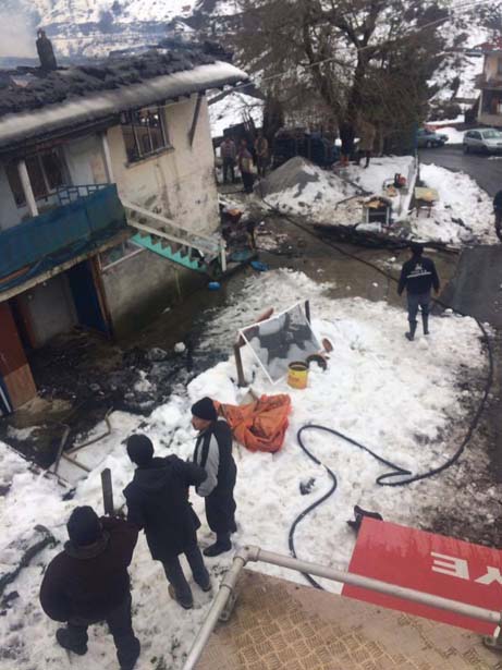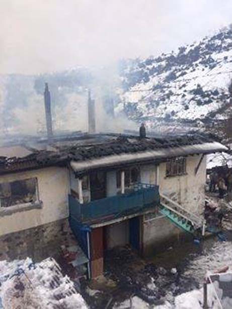 Yangında tüm eşyalarını kaybeden ev halkı ise köylüler tarafından geçici olarak cami lojmanına yerleştirildi. Yangında hiçbir şeylerini kurtaramayan aileye köylüler yardım etmeye çalışıyor.