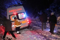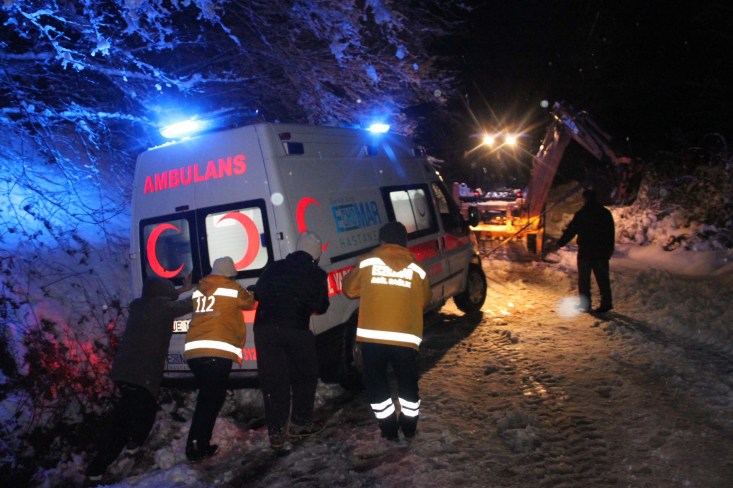 almak için yola çıktı. Yoldaki yoğun kar sebebiyle zincir takan ambulans