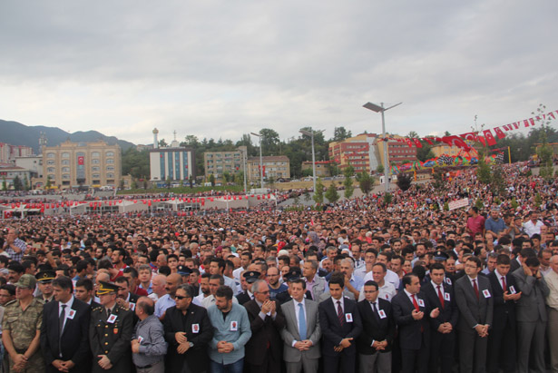 Şehidin ailesi tören alanında güçlükle ayakta dururken görevli polis memurları da şehidin ailesine destek olmaya çalıştı. Alanı dolduran binlerce kişi "Şehidim Hakkını Helal Et Bize", "Şehitler Ölmez, Vatan Bölünmez" sloganları attı. Cenaze namazını ise Karabük İl Müftüsü Halil Bektaş kıldırdı.