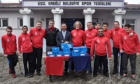 Zorlu maçlar öncesi Voleybol takımına ayakkabı, alt ve üst eşofman ve antrenman tişörtü ile çoraptan oluşan spor malzemeleri jesti yapan Kdz. Ereğli Belediye Başkanı Hüseyin Uysal, tesislerde bir araya geldiği oyunculara başarılar diledi.