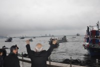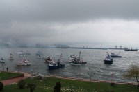 konvoyu esnasında Bozhaneli balıkçılarda denizden süsledikleri teknelerle