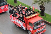 Başkan Posbıyık Eşi Neriman Posbıyık, CHP İlçe Başkanı Hayrettin Kartal kamyonet üzerinde kendilerine sevgi gösterisinde bulunan vatandaşları selamladı.