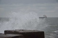 yük gemileri açıkta beklemek zorunda kaldı. Yağmurla birlikte sahil sarıya
