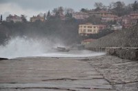 Rüzgarla birlikte dalga boyu 7 metrelik istinat duvarını aştı. Limanda yer bulamayan