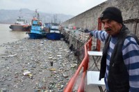dün akşamdan beri devam eden yağmurun getirdiği çöp yığınları limana ulaştı.